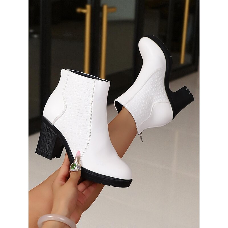 Women's Burgundy Faux Leather Ankle Boots with Block Heels and Croc Texture - Elegant Fall Office & Casual Wear Booties 10