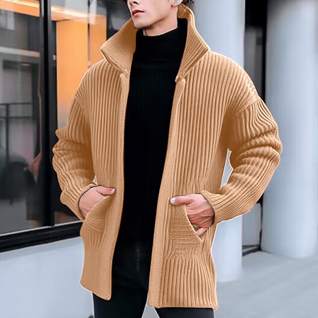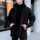 More information about Men's Sweater Cardigan Sweater Ribbed Knit Regular Knitted Plain Stand Collar Warm Ups Modern Contemporary Daily Wear Going out Clothing Apparel Fall & Winter Black Green M L XL