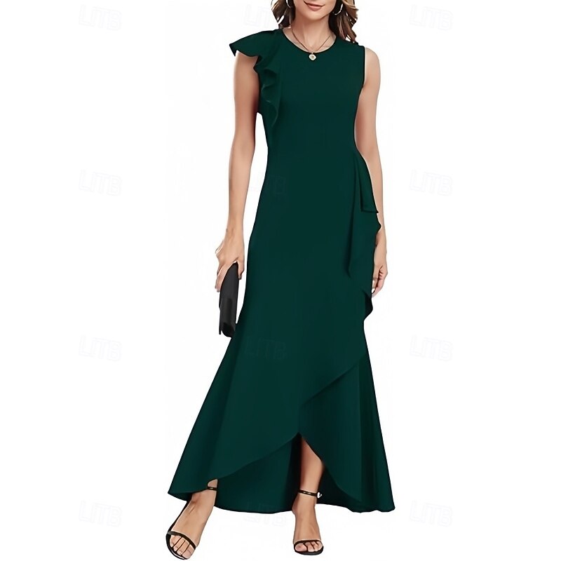 More information about A-Line Wedding Guest Dresses Elegant Dress Wedding Guest Engagement Asymmetrical Sleeveless Crew Neck Stretch Crepe with Ruffles Slit