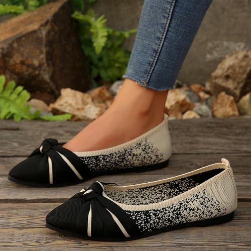 Women's Dressy Casual Flats Pointed Toe Bow Knit Ballet Shoes Comfortable Mesh Slip On Flat Elegant Single Shoe 6