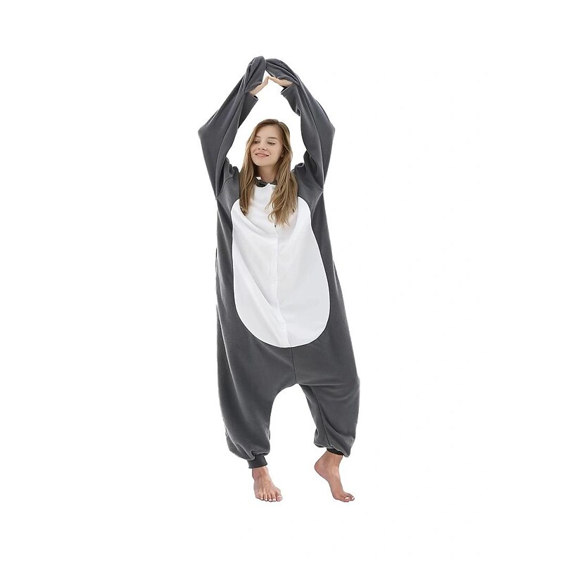 Highlights [Fabric] Designed using high-quality polyester fiber, this onesie offers a soft and cozy feel, ensuring warmth and comfort whether you're lounging at home or participating in a themed event. The micro-elastic material allows for a flexible fit, adding to the overall comfort. [Fit] The onesie features a loose-fitting, one-piece design that ensures maximum comfort and freedom of movement. Its relaxed fit allows for easy layering, making it a versatile piece for various occasions. [Design Highlights] This playful onesie is crafted to resemble a shark, complete with a uniquely designed hood featuring embroidered eyes and felt teeth for an authentic touch. Cuffed wrists and ankles help maintain warmth, while the playful tail adds to the costume's overall charm. The front zipper closure offers convenience, allowing for easy dressing and removal. [Occasions] Ideal for Carnival celebrations, parties, or simply lounging around at home, this shark onesie is perfect for adding a touch of fun to any event. Its whimsical design and cozy fit make it a great choice for both themed gatherings and casual home wear. [Size] Available in a range of sizes from S to XL, this onesie accommodates a variety of body types, ensuring a comfortable fit for adults.