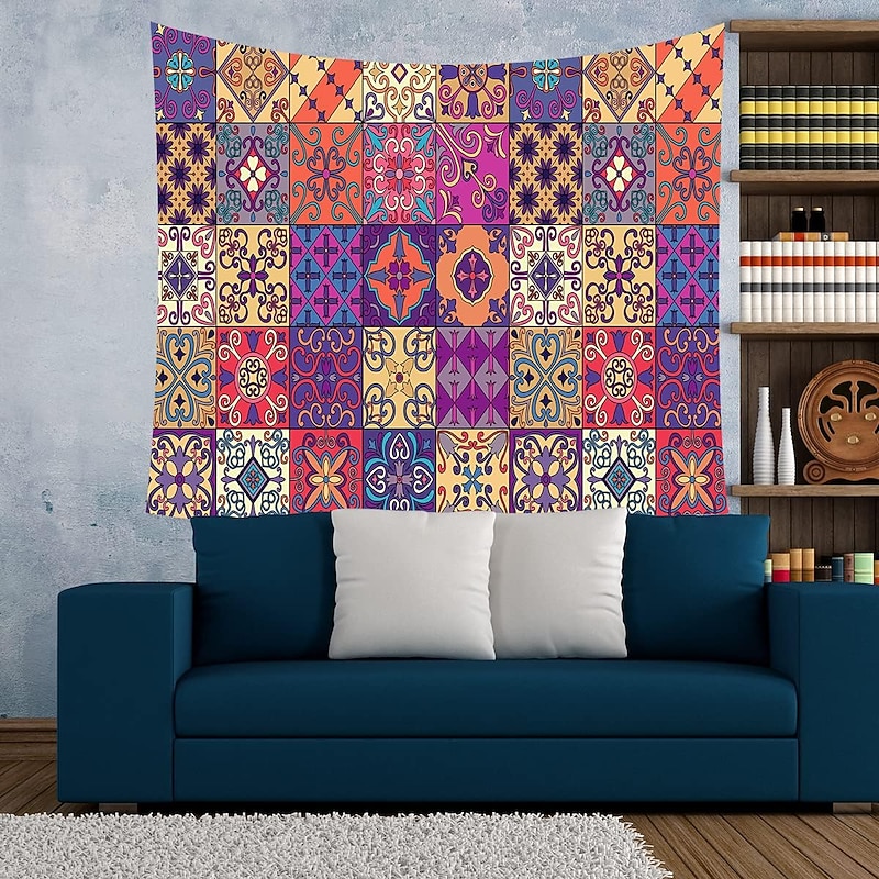 Mandala Bohemian Mosaic Wall Tapestry Art Decor Blanket Curtain Hanging Home Bedroom Living Room Dorm Decoration Boho Hippie Psychedelic Floral Flower Lotus Indian 1