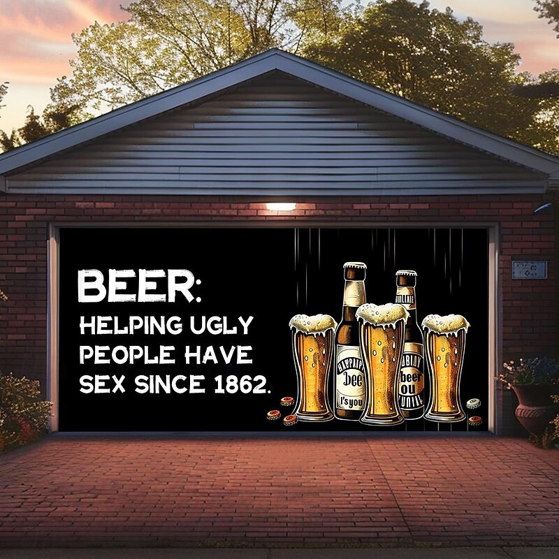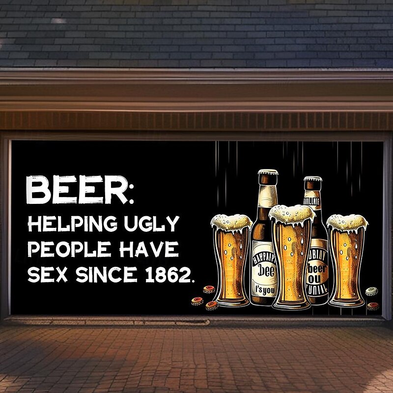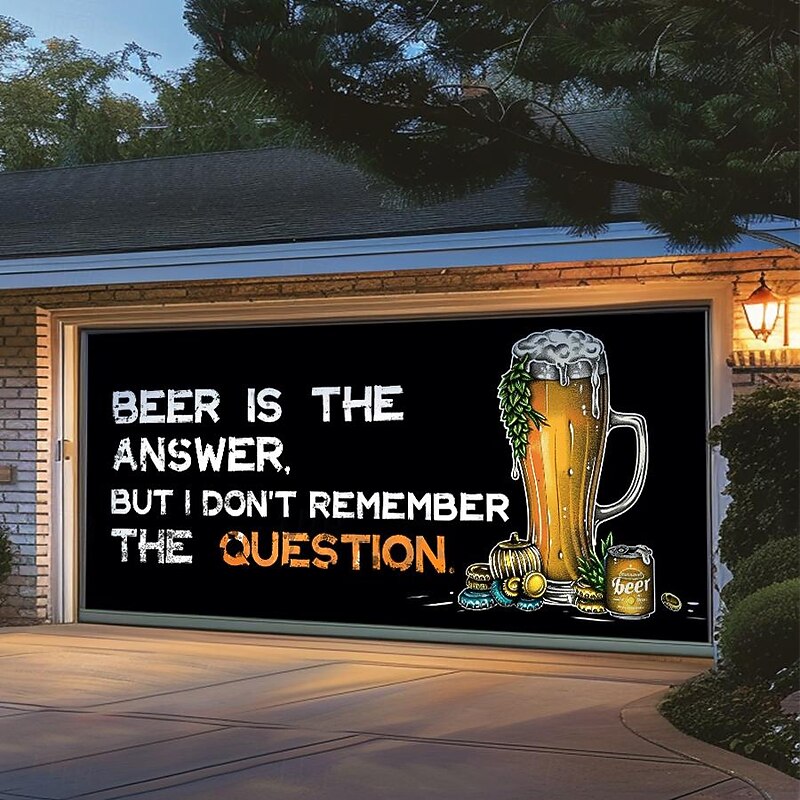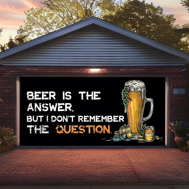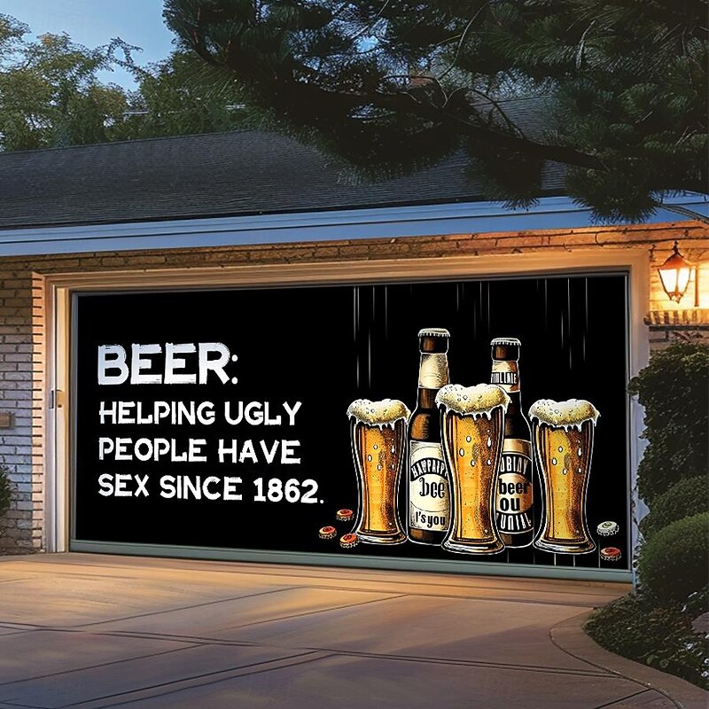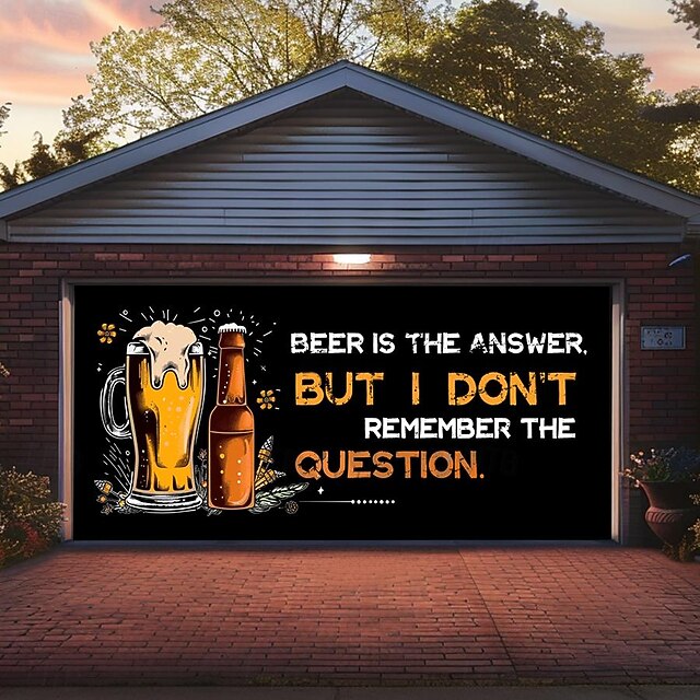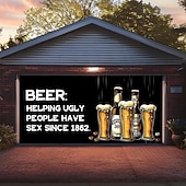 HOT ! Outdoor Garage Door Cover Banner Beer Vintage Slogan Farmhouse Large Backdrop Decoration for Holiday Outdoor Garage Door Home Wall Decorations