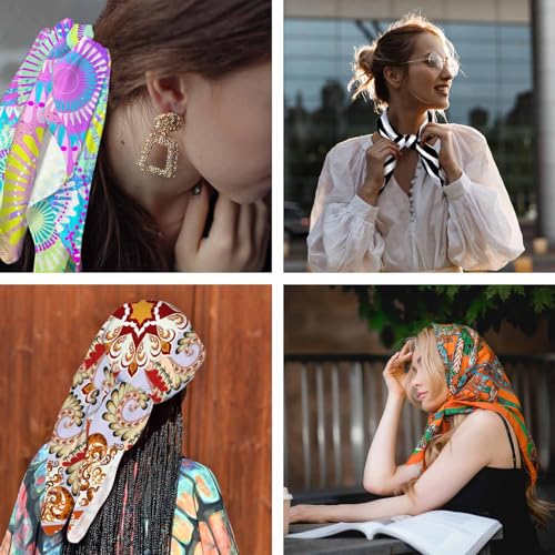 • Fashion Accessories : Square Scarf can be necklaces, headdresses, belts, bag accessories, clothing accessories, add a touch of fashion for you. Can also be used as hair decoration to brighten up an otherwise boring hairstyle. Perfect for gift wrapping, make your gift look high-end and atmospheric, also suitable as a gift for your friends and family