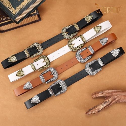 JASGOOD Women Leather Belts Ladies Vintage Western Design Black Waist Belt for Pants Dresses 3