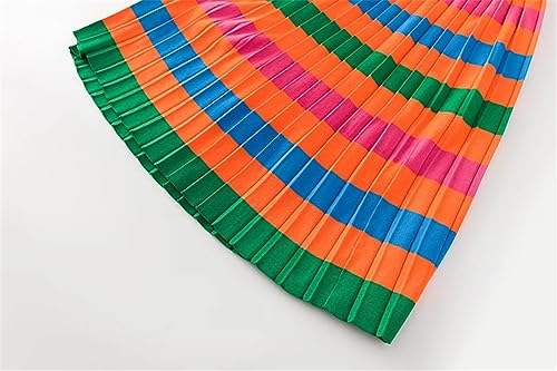 Women's Summer Striped Skirts Set Turn-Down Collar Button Tops+Elastic Waist Half Skirt Two-Piece Set 6