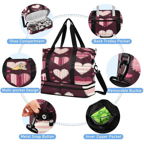 HOT ! Hearts Stitch Sports Gym Bag with Waterproof Dry Wet Pocket, Travel Duffel Bag for Women Men,Workout Bag Fits Yoga, Swimming