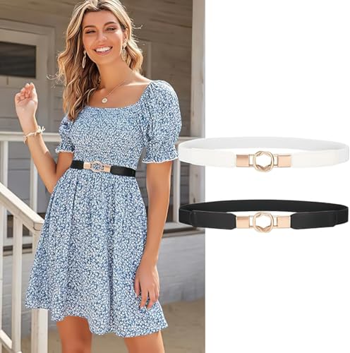 Women Retro Elastic Stretchy Metal Buckle Skinny Waist Belt 1 inch Wide 5