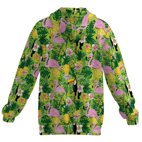 Dragon Fruit Flamingos Toucan Men's Quarter Zip Drawstring Hoodies Long Sleeve Sweatshirt Casual Pullover 2