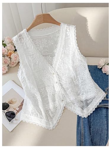 HOT ! SHENHE Women's Plus Size Lace Vest Button Up Cute Boho Floral Embroidered V Neck Western Vest