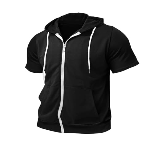 HOT ! Mens Summer Casual Zip up Hoodie Shirts Short Sleeve Thin Jacket Full Zip Sweatshirt with Kangaroo Pocket