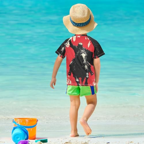 Boys Short Sleeve T-Shirts Knight Graffiti Red Horse Rashguard Kids Swim Shirts Sun UPF 50+ 4