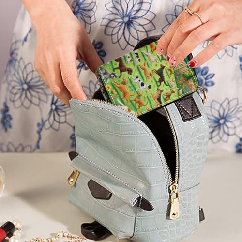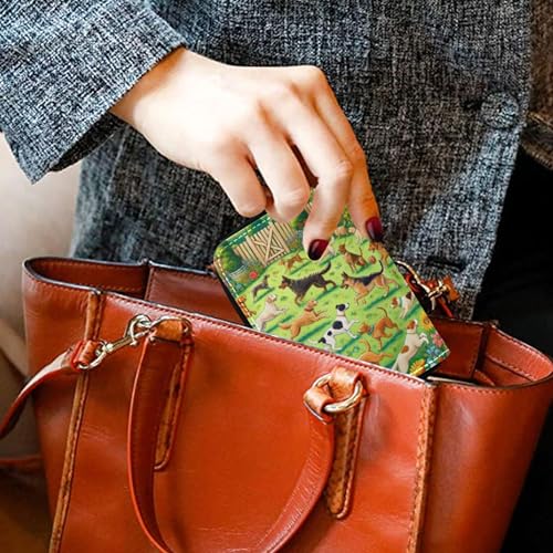 HOT ! RFID Blocking Credit Card Holder Women's Wallet Small Zip Around Travel Cash Wallet with Coin Pocket Playful Dogs Garden Park