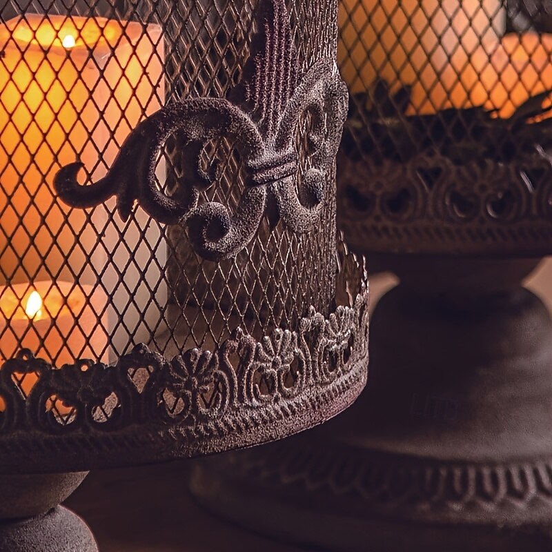 Vintage 1pc Bird Cage Candle Holder  Polished Metal Lantern with Stand Floral Theme Tabletop Decor - Versatile for Christmas Halloween Thanksgiving Valentine's Ramadan Gothic & Victorian Home A 7