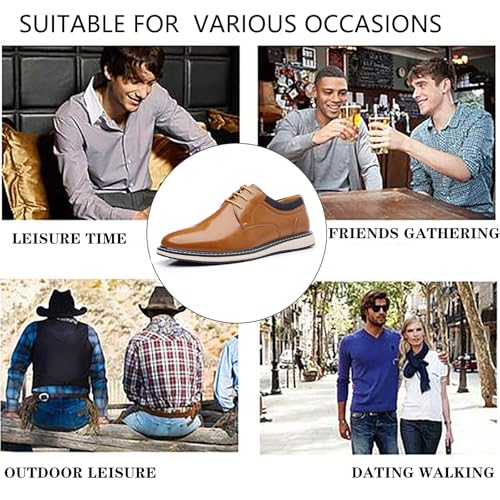 Men's Polished Leather Fashion Lace Up Flat Oxfords Fashion Classic Low Top Soft Sole Formal Dress Sneakers Prom Party Casual Business Tuxedo Derby Shoes 5