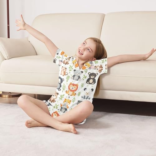 ALAZA Bear Lion Pajamas Satin Pajama Set Short Sleeve Button Down Sleepwear 6
