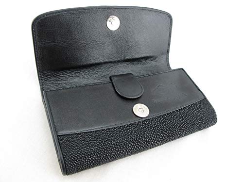 More information about Julie Genuine Real Stingray Skin Leather One Eye Trifold Clutch Black Wallet