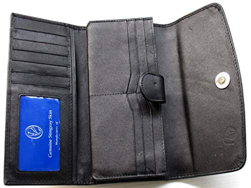 Julie Genuine Real Stingray Skin Leather One Eye Trifold Clutch Black Wallet 5