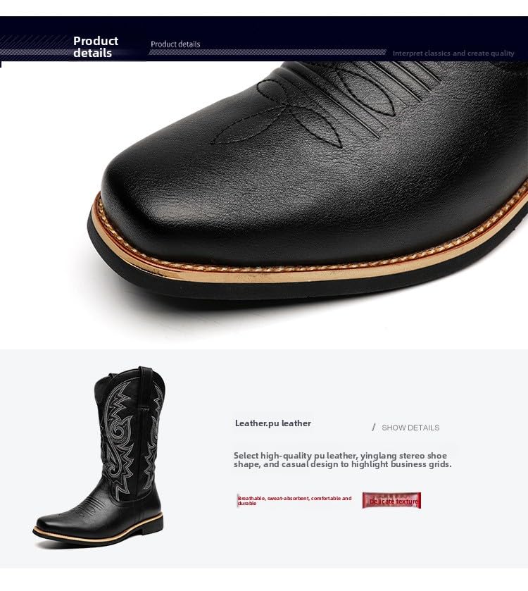 • Classic Western Cowboy Aesthetic Features traditional stitching and high-top silhouette for a timeless cowboy look with modern European and American flair.