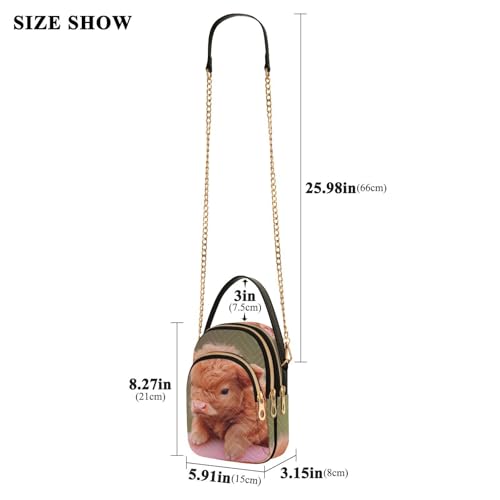 Highland Cow Cute Sling Bag for Women, Small Shoulder Bag Crossbody Bag Purse with Chain Strap Top handle 5.91×3.15×8.27 Inches 5