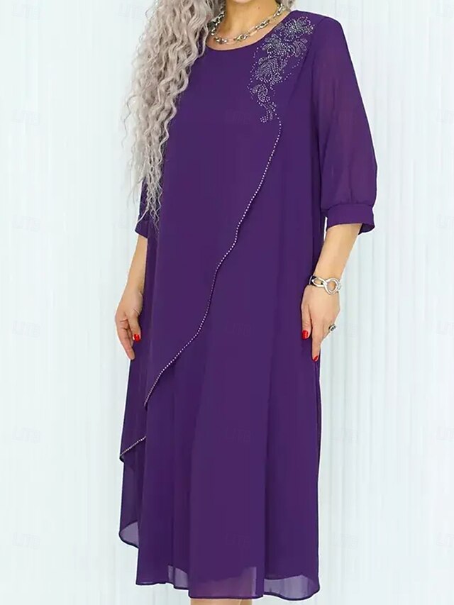HOT ! Women's Long Dress Maxi Dress Casual Dress Cocktail Dress Wedding Guest Dress Chiffon Dress Elegant Stylish Work Daily Engagement Loose Fit Plain 3/4 Length Sleeve Crew Neck Black Royal Blue Purple