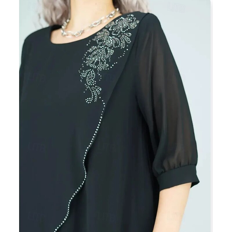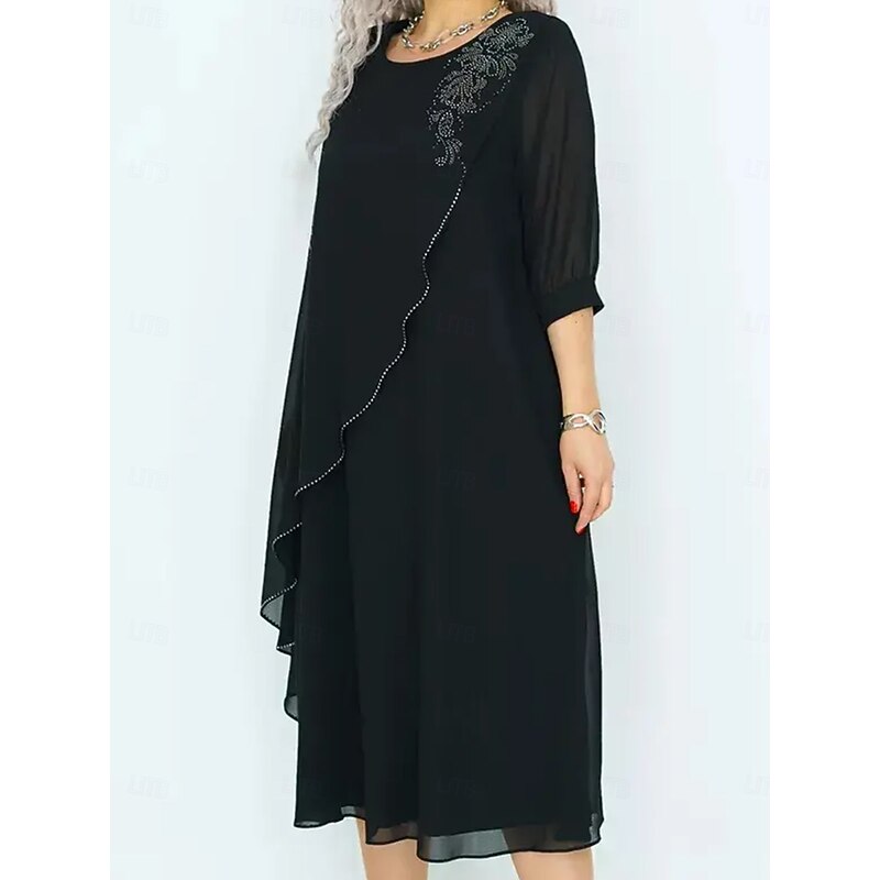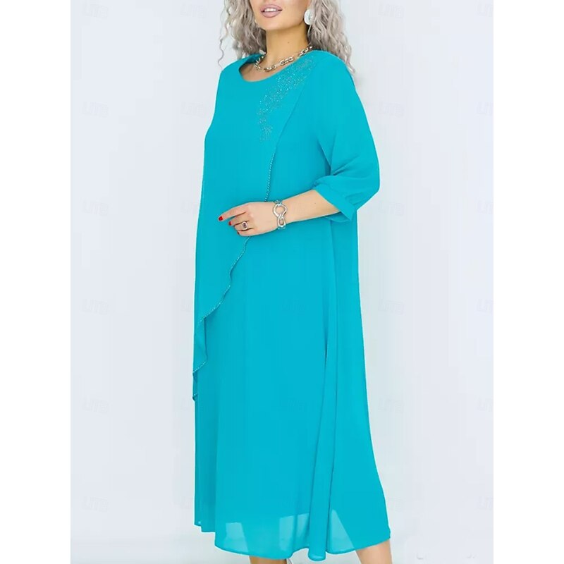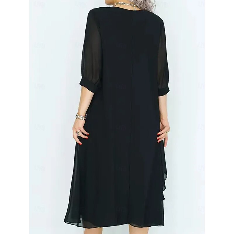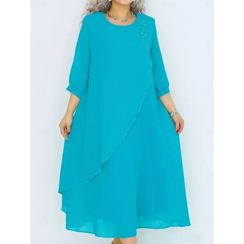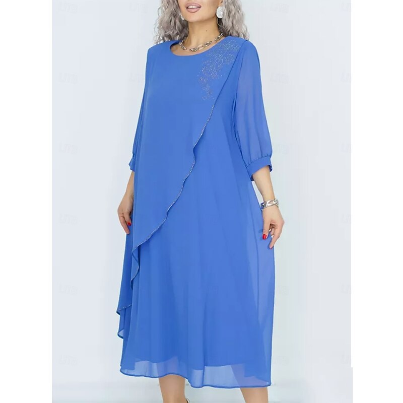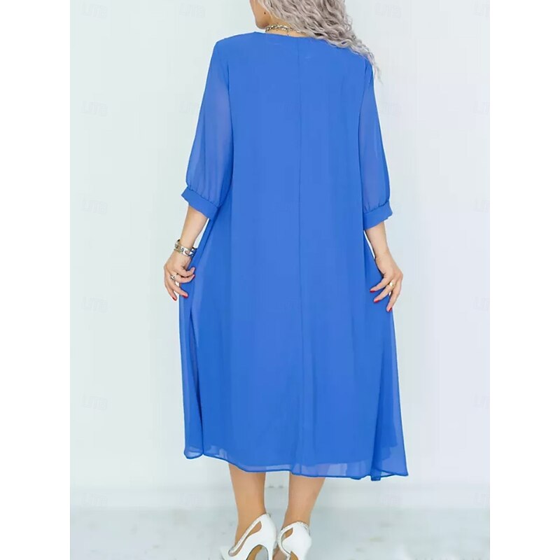 More information about Women's Long Dress Maxi Dress Casual Dress Cocktail Dress Wedding Guest Dress Chiffon Dress Elegant Stylish Work Daily Engagement Loose Fit Plain 3/4 Length Sleeve Crew Neck Black Royal Blue Purple