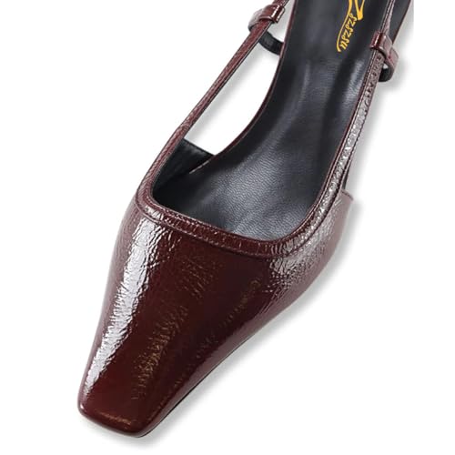 Zszszsu Women's Chic Square Toe Slingback Pumps Kitten Low Heels Buckle Strap Comfy Party Dress Shoes Daily Size 4-16 US 6