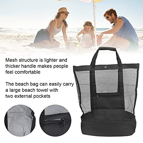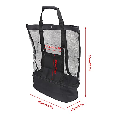 HOT ! Camping Beach Mesh Tote Bag with Detachable Cooler Bag Picnic Ice Bag Insulated Cooler Pouch Multifunctional Packing Organizer Lightweight Durable Canvas for Outdoor Activities (Black)