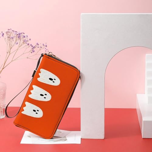 White Cartoon Ghosts Halloween PU Leather Clutch Long Bifold Wallet, Coin Purse Credit Pass Case, Durable Card-Holder Money Storage for Women Men 6