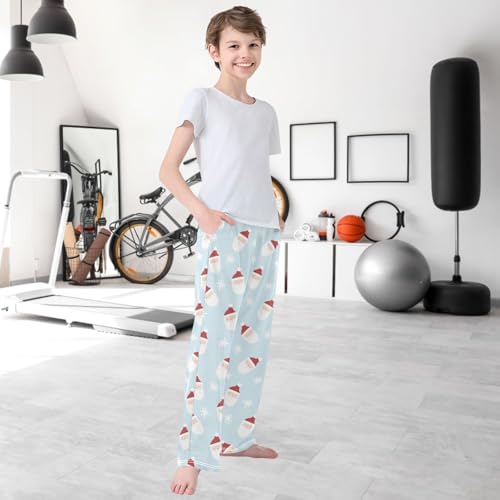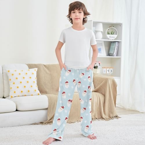 Boy's Lounge Pants Christmas Man Light Blue Kids Jogger Pants Elastic Waist Long Bottoms with Pockets 6-14 Years 7