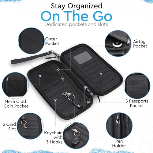 Family Passport Holder for Travel - RFID Blocker - AirTag Compatible - Multiple Passport Holder for 5 - Porta Pasaporte Familiar - Travel Document Holder 5