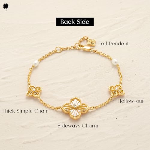 MYEARS Women Bracelet Gold Clover Flower Bead Sideways Charm Cubic Zirconia 14K Dainty Simple Thick Chain Everyday Trendy Lucky Jewelry 5