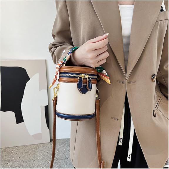 Colorblock Bucket Bag for Women, 2025 New Summer Cylinder Bag, Leather Bucket Crossbody, with Adjustable Strap 5
