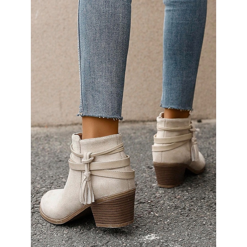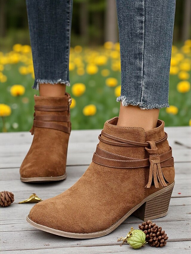 Women's Brown Ankle Boots with Tassel Straps – Casual Western Style Faux Suede Low Heel Booties for Fall, Streetwear and Daily Outfits 20