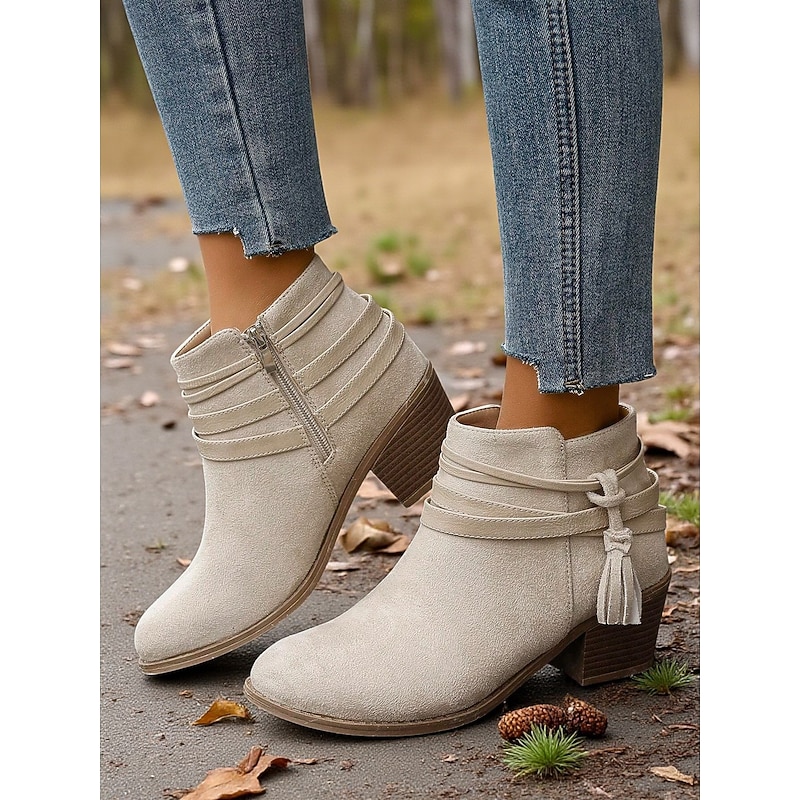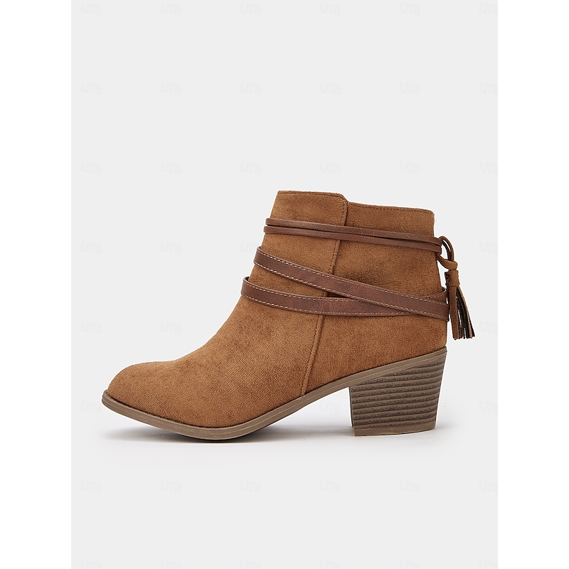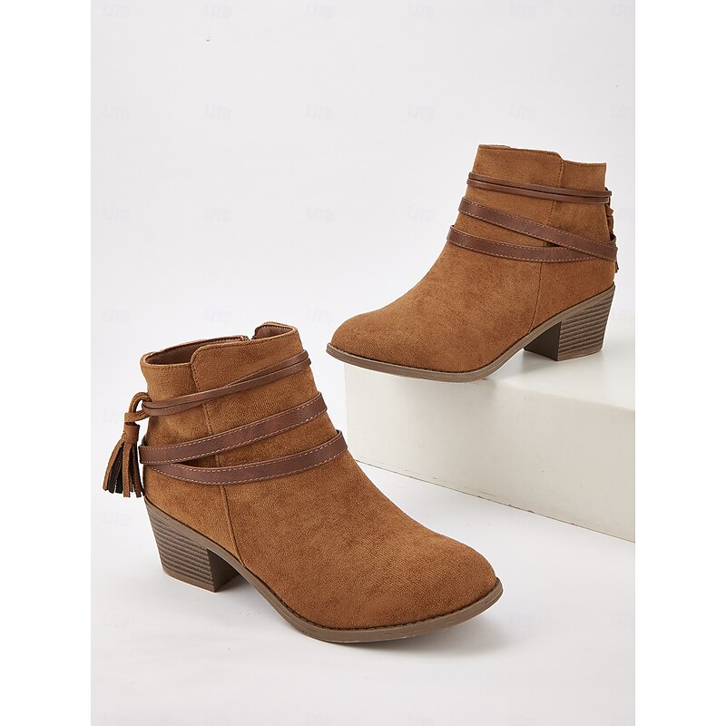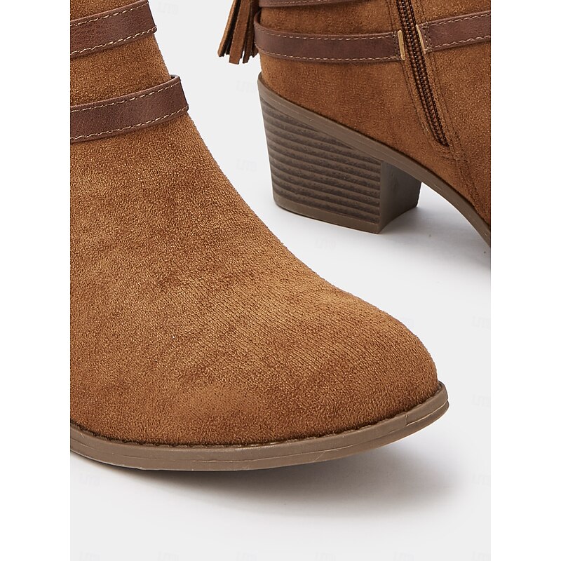 Women's Brown Ankle Boots with Tassel Straps – Casual Western Style Faux Suede Low Heel Booties for Fall, Streetwear and Daily Outfits 17