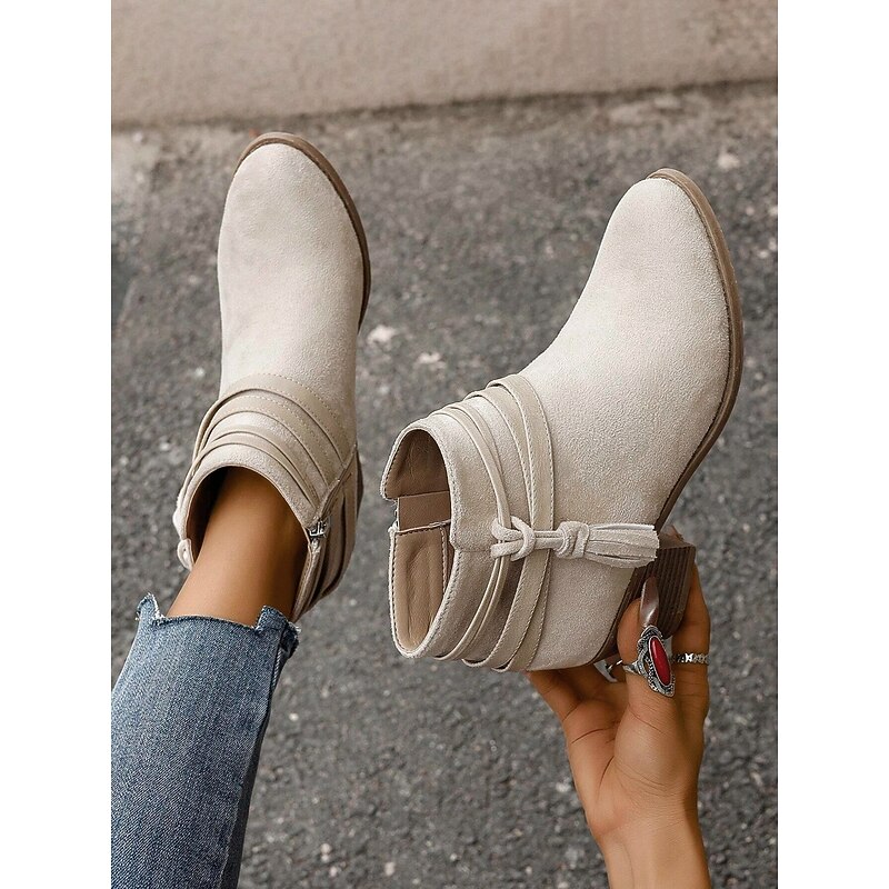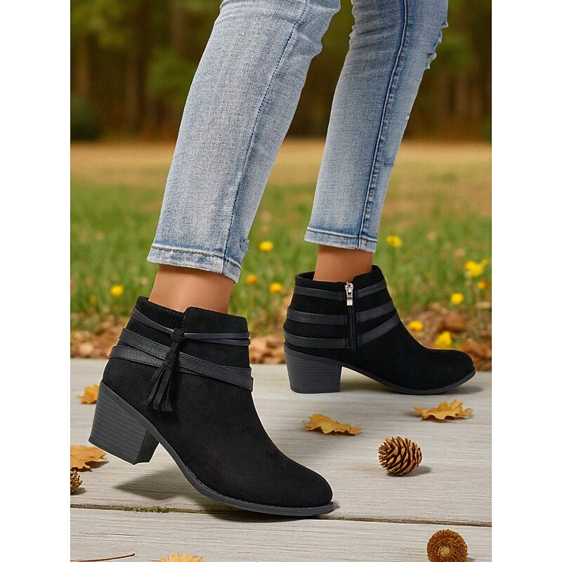 HOT ! Women's Brown Ankle Boots with Tassel Straps – Casual Western Style Faux Suede Low Heel Booties for Fall, Streetwear and Daily Outfits