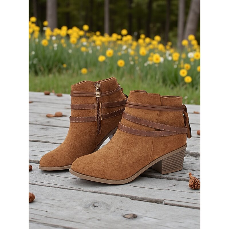 Women's Brown Ankle Boots with Tassel Straps – Casual Western Style Faux Suede Low Heel Booties for Fall, Streetwear and Daily Outfits 1