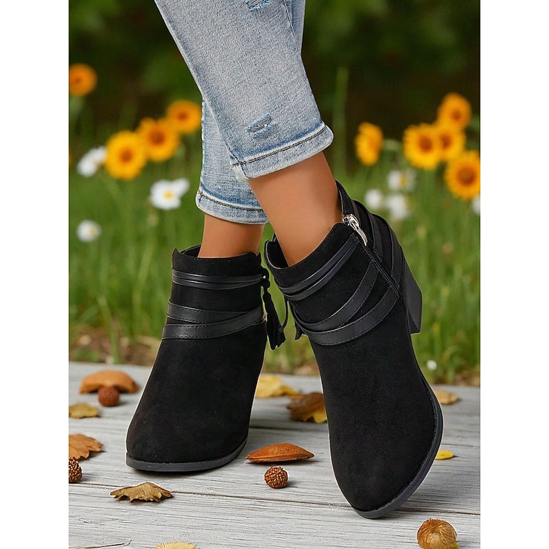Women's Brown Ankle Boots with Tassel Straps – Casual Western Style Faux Suede Low Heel Booties for Fall, Streetwear and Daily Outfits 11