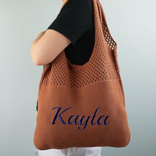 Personalized Knitted Beach Bag with Embroidered Name,Custom Cute Crochet Boho Style Tote Bags for Women Travel,Vacation 5