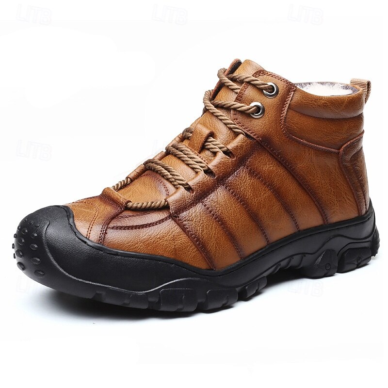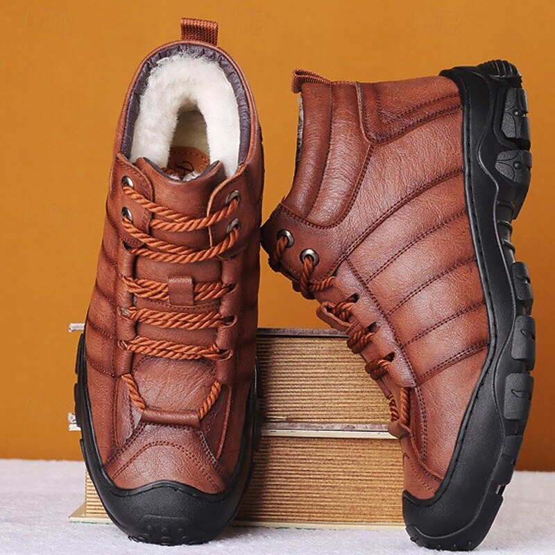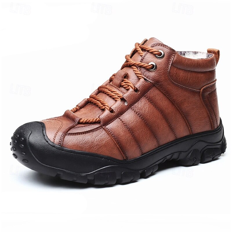 More information about Men's Brown Faux Leather Hiking Boots with Plush Lining – Durable Winter Footwear for Outdoor Adventures