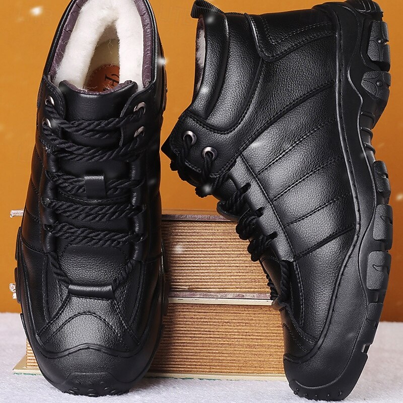 Highlights [Fabric] : Crafted with a high-quality microfiber upper, these men’s hiking boots offer a robust and durable exterior, while the PU lining ensures a plush and warm interior, perfect for winter conditions. The rugged rubber outsole enhances stability and provides excellent slip resistance on various surfaces. [Fit] : Designed with a round toe shape and a mid-ankle cut, these boots offer a comfortable fit that supports both style and practicality. The lace-up closure ensures a secure fit while the padded collar adds extra comfort for extended wear. [Design Highlights] : Featuring a classic lace-up design, these boots are styled with a versatile and rugged look, suitable for various outdoor settings. The combination of microfiber and plush lining enhances both functionality and aesthetic appeal, making them a staple for winter adventures. [Occasions] : Ideal for hiking, outdoor adventures, and casual wear during colder months. These boots seamlessly complement a range of casual and outdoor outfits, making them a versatile choice for any winter wardrobe. [Size Range] : Available in a broad range of sizes, from US6 to US11.5, these boots cater to a variety of foot sizes, offering a comfortable and reliable option for many.