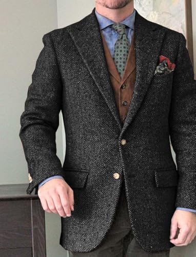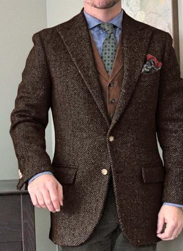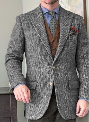 More information about VENNYNG Men's Knit Herringbone Casual Blazer Slim Fit Tweed Jacket Single Breasted for Man Sport Coat