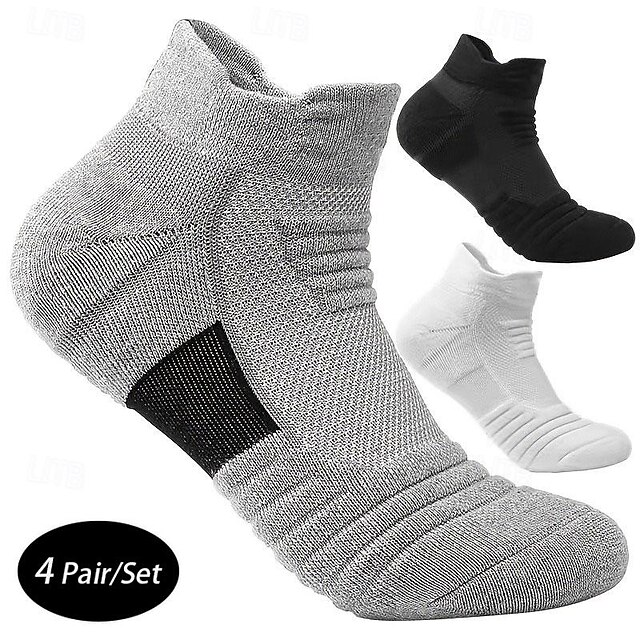 Men's 4 Pairs Multi Packs Socks Running Socks Casual Socks Black White Color Plain Vacation Sports & Outdoor Daily Basic Medium Spring Fall Fashion Casual