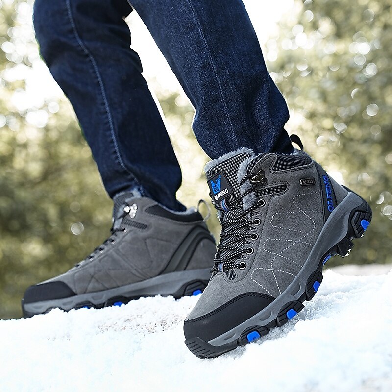 Men's Waterproof Hiking Boots with Warm Fleece Lining – High-Top Outdoor Winter Shoes with Non-Slip Sole 22