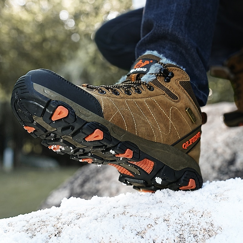 HOT ! Men's Waterproof Hiking Boots with Warm Fleece Lining – High-Top Outdoor Winter Shoes with Non-Slip Sole