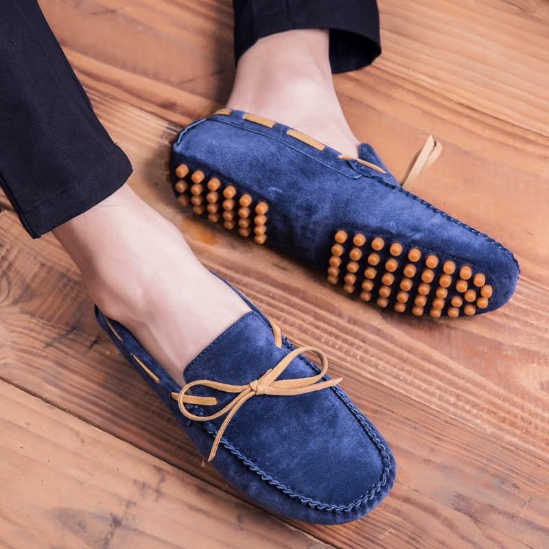 Loafers for Men Suede Vamp Driving Moccasins Shoes Round Toe Anti-Slip Lightweight Flat Heel Prom Wedding Slip On 6