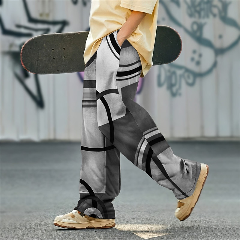 Highlights [Fabric] : These men's pants are made from high-quality polyester fabric, known for its softness and breathability, ensuring comfort during spring and summer months. [Fit] : Designed with a regular fit, these pants provide a relaxed feel that allows for easy movement, making them ideal for both street and outdoor activities. [Design Highlights] : The standout feature of these pants is the bold 3D geometric print, adding a modern and artistic flair to your wardrobe. The mid-waist design with an elastic waistband ensures a secure and comfortable fit, while pockets add practicality to the style. [Occasions] : Perfect for casual outings, street events, or outdoor activities, these pants offer a stylish way to make a statement. Whether you're going out with friends or enjoying a day in the city, these pants are versatile and trendy. [Size Range] : Available in a variety of sizes including S, M, L, XL, XXL, and 3XL, ensuring a suitable fit for different body types and preferences.