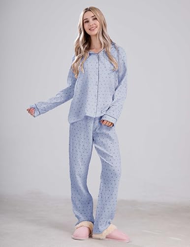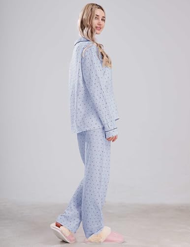 Womens Cotton Gauze Pajama Set Long Sleeve Button Up Shirt and Pants 2 Piece Cute Printed Pj Set 6