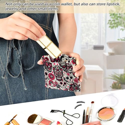 HOT ! Dia De Muertos Skulls Coin Purse Leather Pouch Change Purse, Squeeze Coin Pouch for Cards, Keys & Lipsticks, Unisex