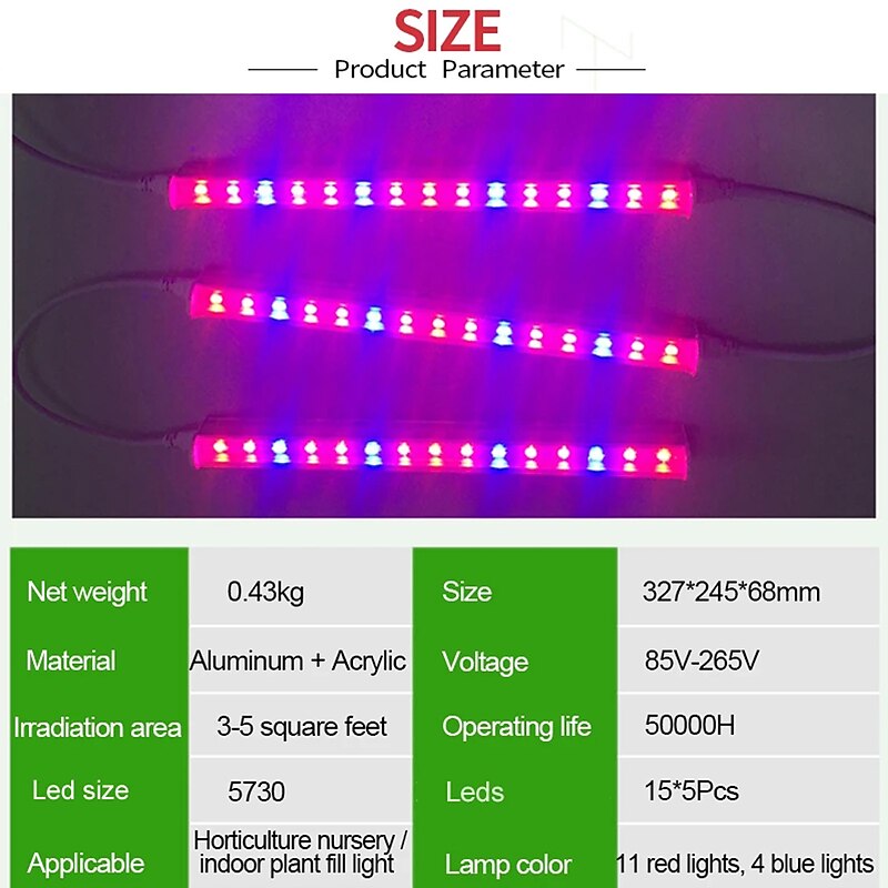 More information about 30cm T5 LED Grow Light - 6W Full Spectrum Phytolamp for Plants, Vegetables & Seedlings EU/US/UK/AU Plug AC85-265V